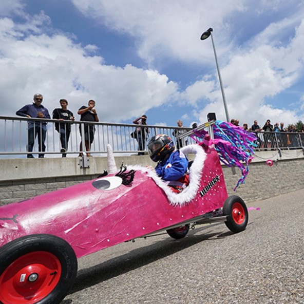 Nach der gelungenen Premiere im Sommer 2017, veranstaltete Liebherr in Kooperation mit regionalen Schulen am 13. Juli 2019 erneut ein großes Seifenkistenrennen auf dem Gelände der Liebherr-Verzahntechnik GmbH in Kempten. Insgesamt 232 Schüler:innen aus 17 regionalen Schulen zwischen Bodensee und Allgäu waren an dem Projekt beteiligt und traten in 30 Rennteams auf der 180 Meter langen Rennstrecke gegeneinander an, um die schnellste Zeit zu erreichen.