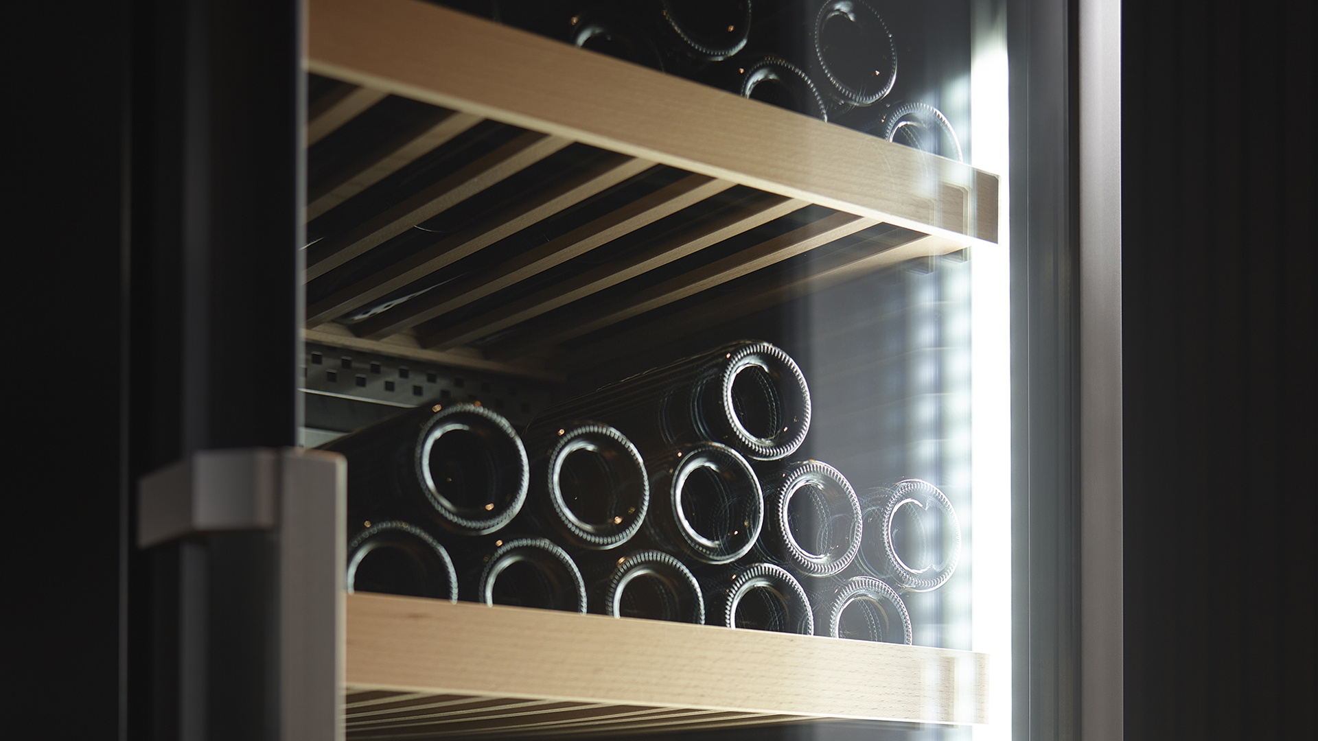 Beste Sicht auf Ihren Wein: Die LED LightColumn verläuft von oben bis unten durch Ihr gesamtes Gerät mit Glastür. Sie leuchtet den Innenraum Ihres GrandCru Selection-Weinlagerschranks gleichmäßig aus. Ein besonderes Highlight ist die dimmbare Präsentationsbeleuchtung, wodurch Ihre Weinsammlung im Gerätt auch bei geschlossener Tür gekonnt in Szene gesetzt werden kann.
