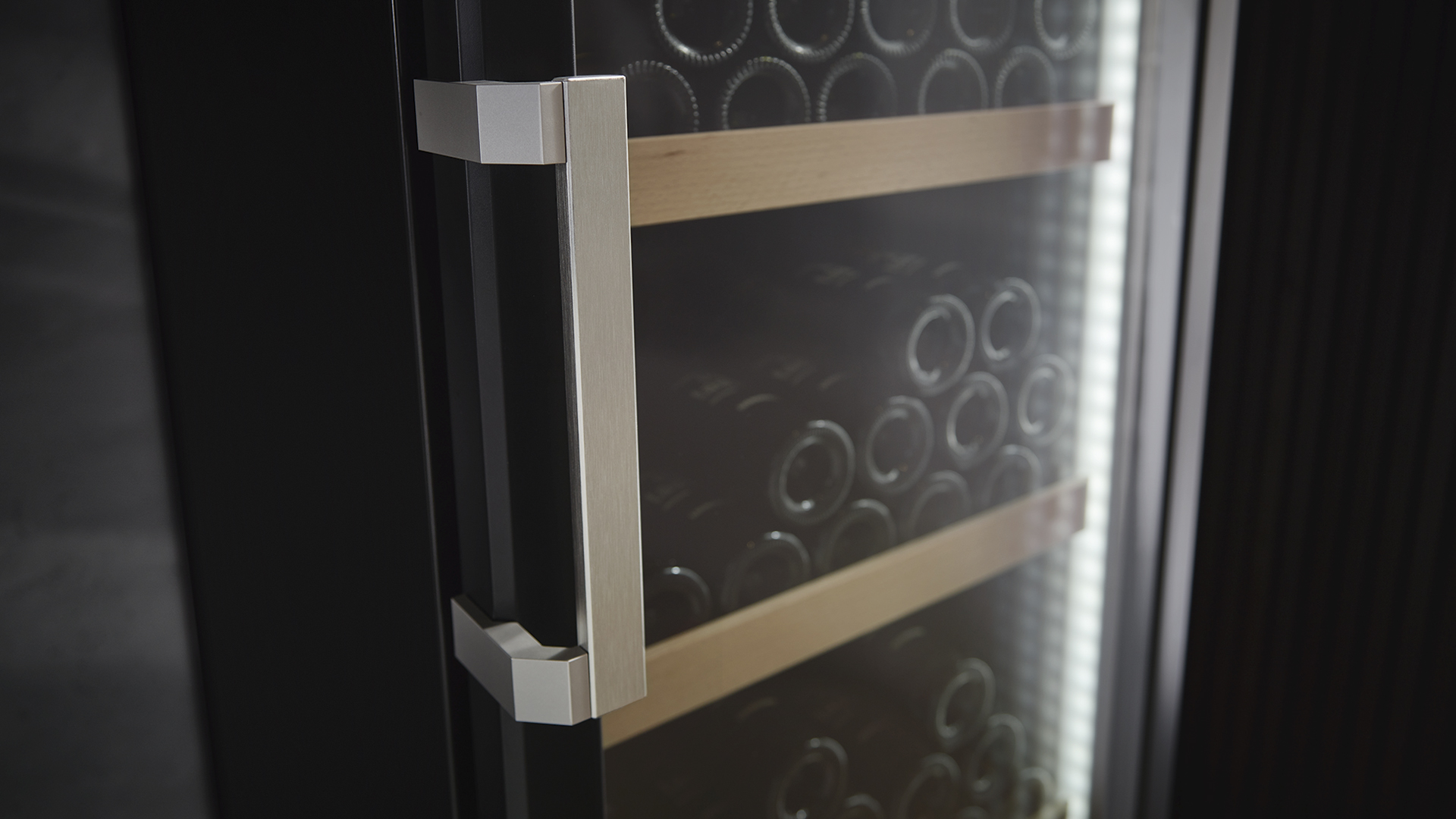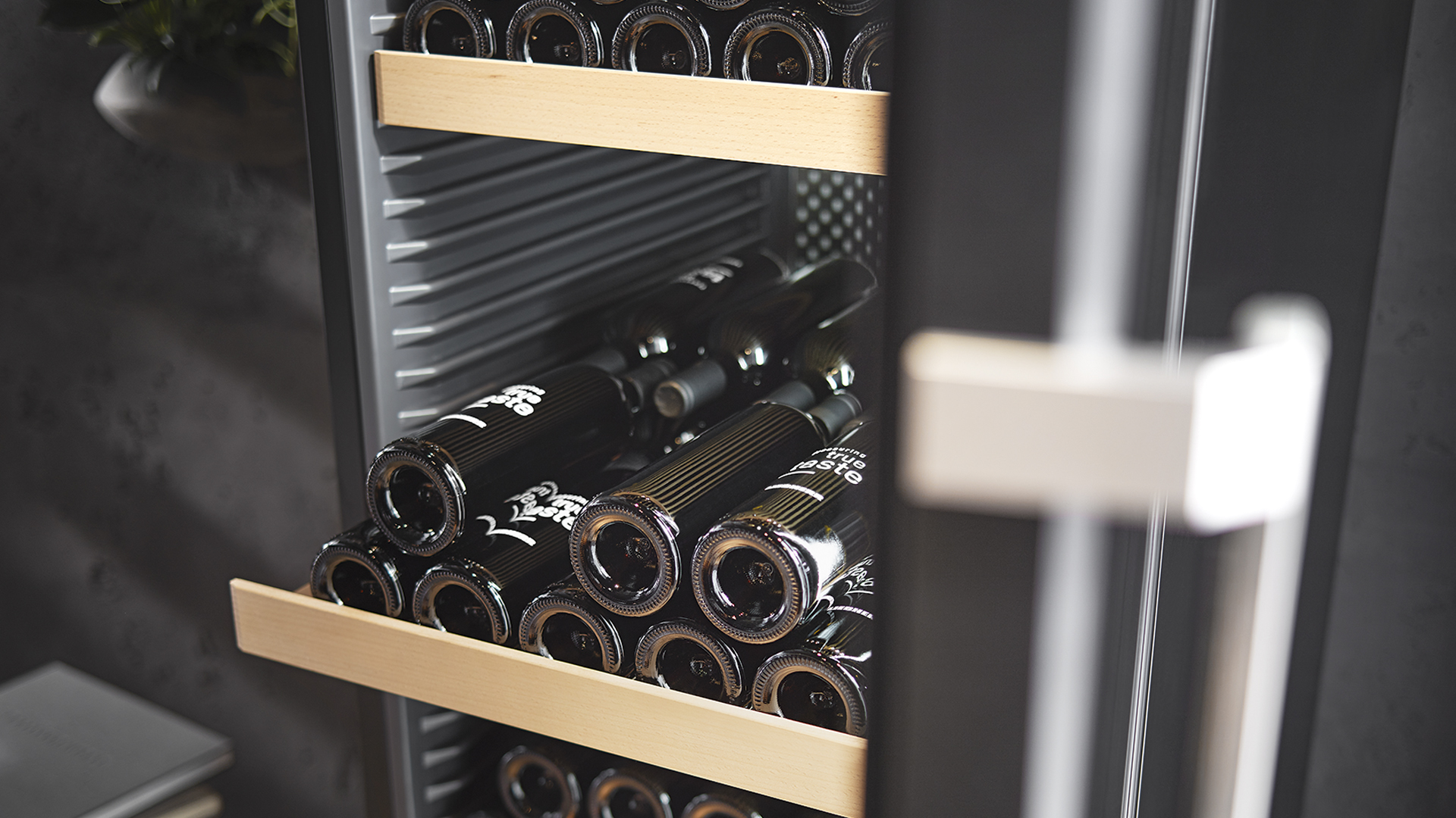 Dank des SelfClosing-Mechanismus schließt sich die Tür Ihres Weinlagerschranks bei einer Öffnung von weniger als 90° ganz von selbst – immer so sanft, wie es wertvolle Weine erfordern. Die EasyFill-Beladungshilfe sorgt dafür, dass die Tür ab einem Winkel von 90° geöffnet bleibt – zur besonders einfachen Befüllung.