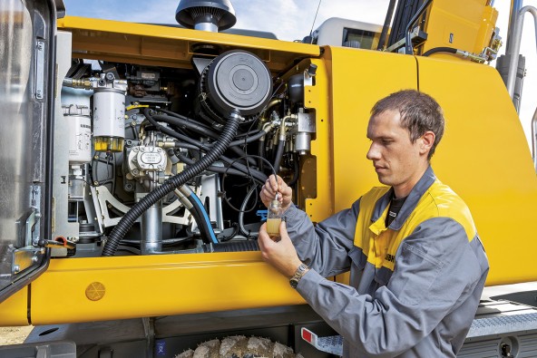 Um die Ölqualität während des Gebrauchs abzusichern und so optimale Ölwechselintervalle zu erzielen, empfiehlt Liebherr regelmäßig Gebrauchtölanalysen durchzuführen.