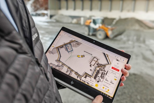 Autonomes Arbeiten von Radladern basiert auf einer präzisen Definition der Arbeitsumgebung, für die eine exakte Karte erzeugt wird.