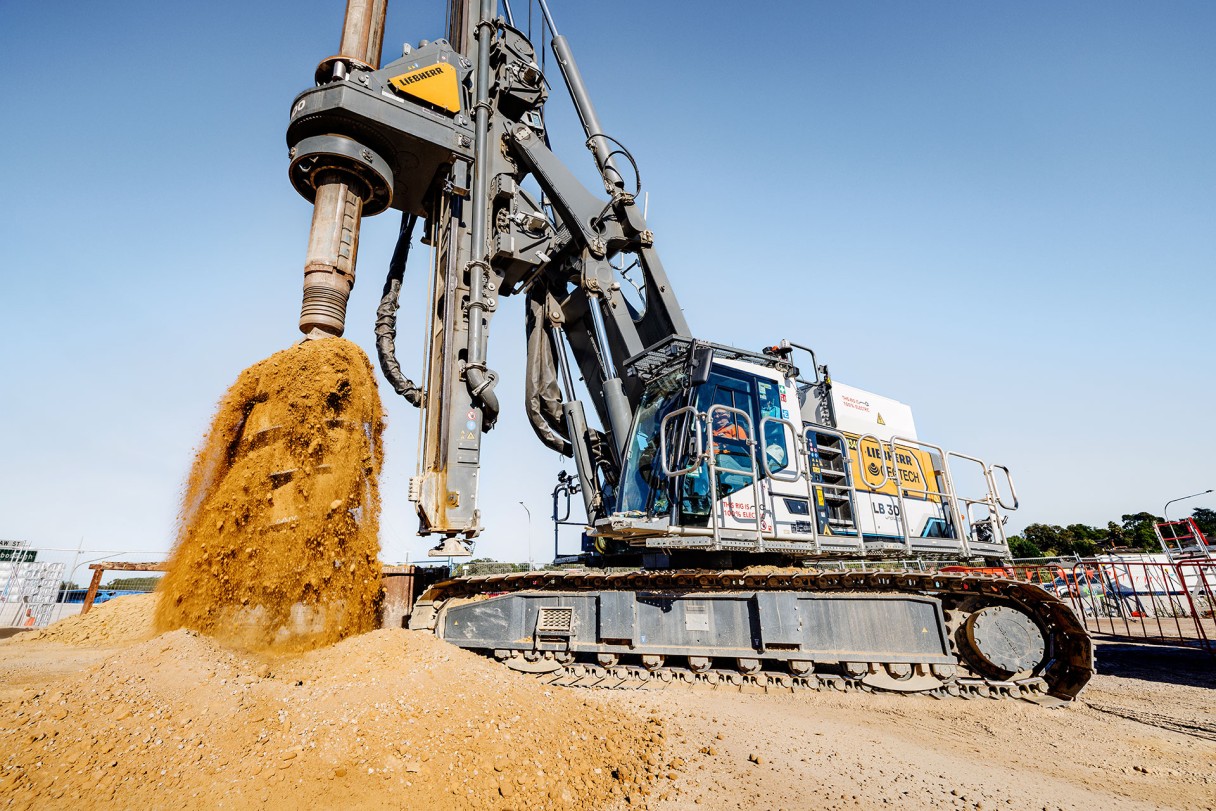 In Melbourne (Australien) kommt das Drehbohrgerät LB 30 unplugged beim Ausbau einer Straßeninfrastruktur zum Einsatz. Sein Elektroantrieb ermöglicht einen CO₂-freien Betrieb und erheblich verringerte Geräuschemissionen.