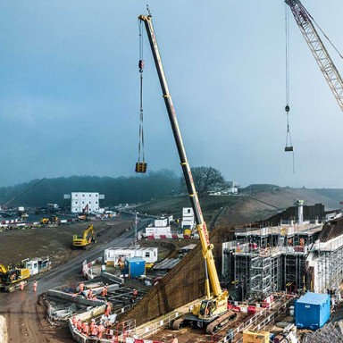 Kraftvoll unterstützt der LTR 1040 die Großbaustelle Canary Wharf beim zukünftigen Copthall-Tunnel.