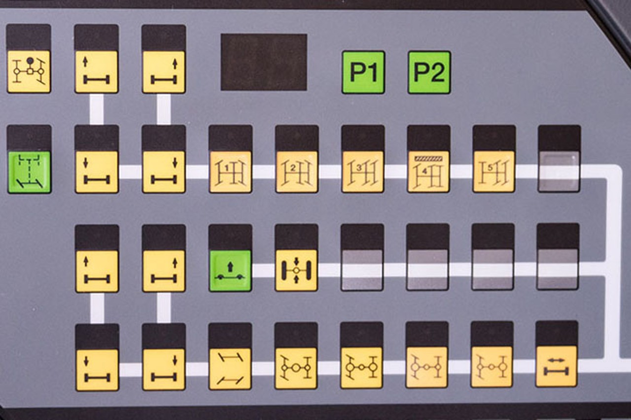 Für zusätzliche Sicherheit sorgt ein automatischer Zentrierzylinder, der im Fehlerfall die Hinterachsen gerade stellt. Zwei voneinander unabhängige Hydraulikkreise mit radgetriebener und motorgetriebenr Hydraulikpumpe gewährleisten die Funktion auch bei Ausfall einzelner Komponenten. Die Steuerung erfolgt zudem über zwei separate Rechner.