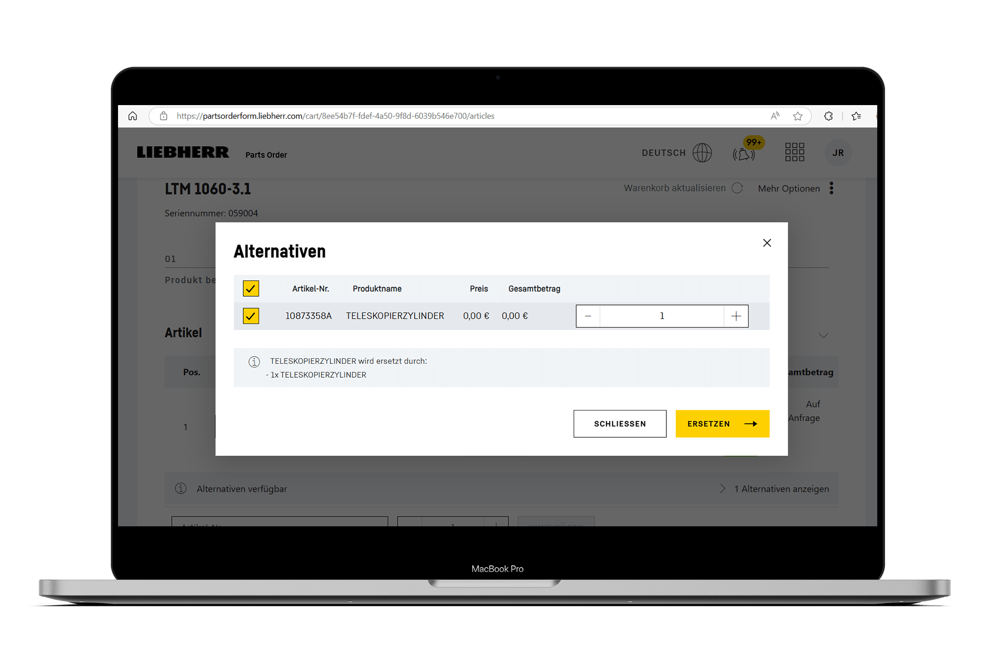 Im Warenkorb alternative Artikel einsehen und auswählen.