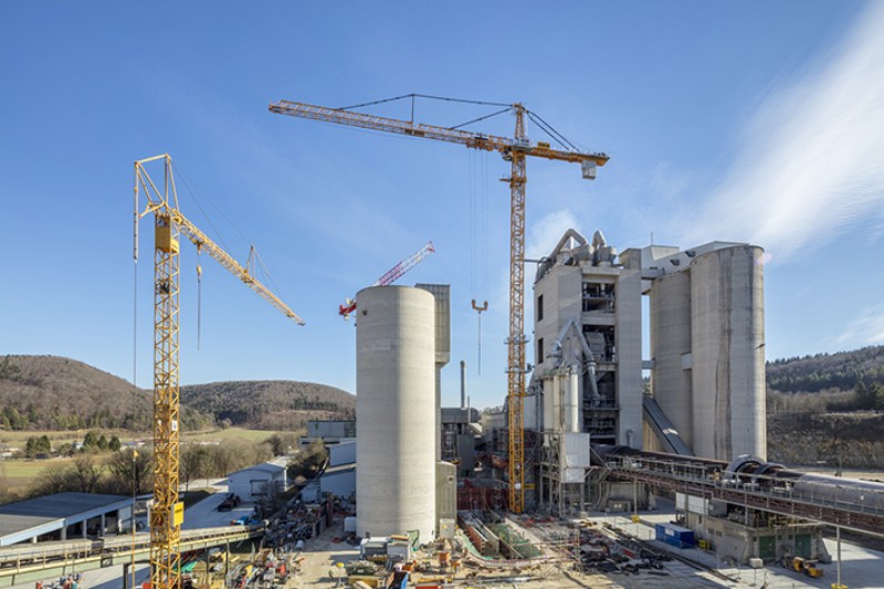 Bis ins letzte Detail durchdacht und umgesetzt hat die Liebherr-Sparte Turmdrehkrane den Einsatz eines 1000 EC-H 50 Litronic in Schelklingen. Dort wird gerade bei laufendem Betrieb des Zementwerks auf engstem Raum eine neue Klinker-Produktionslinie gebaut.