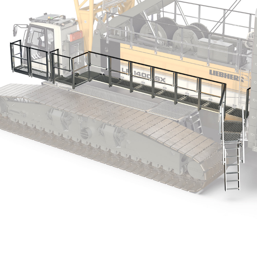 Der LR 1400 SX bietet trotz seiner Größe ein vielfältiges Anwendungsspektrum und überzeugt mit seiner Flexibilität. Dafür sorgt ein modulares Ballastsystem und eine Vielzahl an möglichen Auslegerkonfigurationen. Mit dem kompakten Transportgewicht von 46 t kann der Kran ganz einfach zwischen den Baustellen bewegt werden. Die Podeste und Geländer bleiben während des Transportes am Oberwagen. Dank Selbstmontagesystem ist der Kran schnell einsatzbereit. Die Bodendruckanzeige berechnet den aktuellen Bodendruck in Echtzeit und vergleicht diesen mit vorgegebenen Sicherheitsgrenzwerten der jeweiligen ...