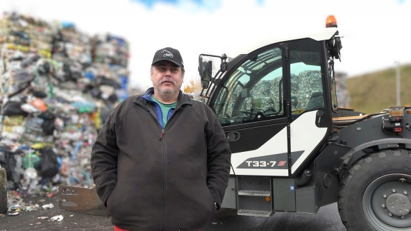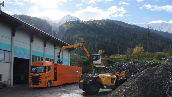 Seit 1965 steht Höpperger als familiengeführtes Unternehmen für nachhaltige Entsorgungslösungen in Tirol. In dritter Generation geführt, beschäftigt das Unternehmen heute über 180 Mitarbeiter:innen und verarbeitet in hochmodernen Anlagen einen Teil der regionalen Entsorgungsmenge – von Elektroschrott über Speisereste bis hin zu Kaffeekapseln und Leichtverpackungen. Im täglichen Betrieb übernimmt der Liebherr T 33-7s vielfältige Aufgaben: Vom Verladen und Anrichten des Materials in die Container bis hin zum Ausschieben und Sortieren von Kunststoffballen. Besonders in beengten Platzverhältnissen spielt der Teleskoplader seine Stärken aus: „Super ist auch die Lenkung, dass man im Stehen fast ganz wenden kann", berichtet Fritz Reinhold, erfahrener Fahrer bei Höpperger. Der enge Wendekreis und der hydrostatische Fahrantrieb ermöglichen effizientes und zugleich feinfühliges Arbeiten selbst unter schwierigen Bedingungen
