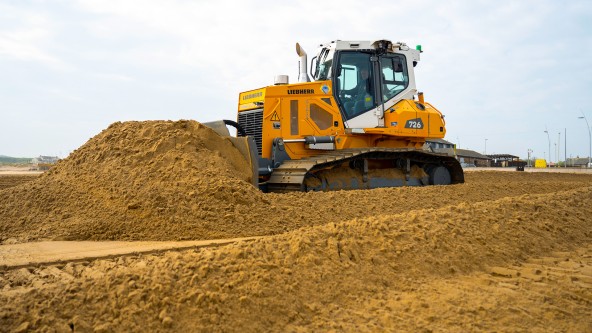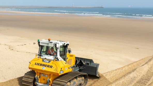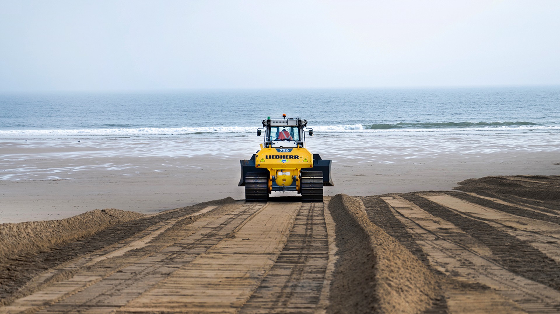 Wenn Winterstürme der Nordsee tonnenweise Sand auf die Promenade von Southaven Beach treiben, setzt VPH Plant Hire auf die Liebherr PR 726 Generation 8. Die kraftstoffeffiziente Planierraupe schiebt die Sandmassen zurück und macht den mehreren Kilometer langen Strand rechtzeitig für die Sommersaison wieder zugänglich – eine anspruchsvolle Aufgabe, die in einem kurzen Zeitfenster erledigt werden muss.
