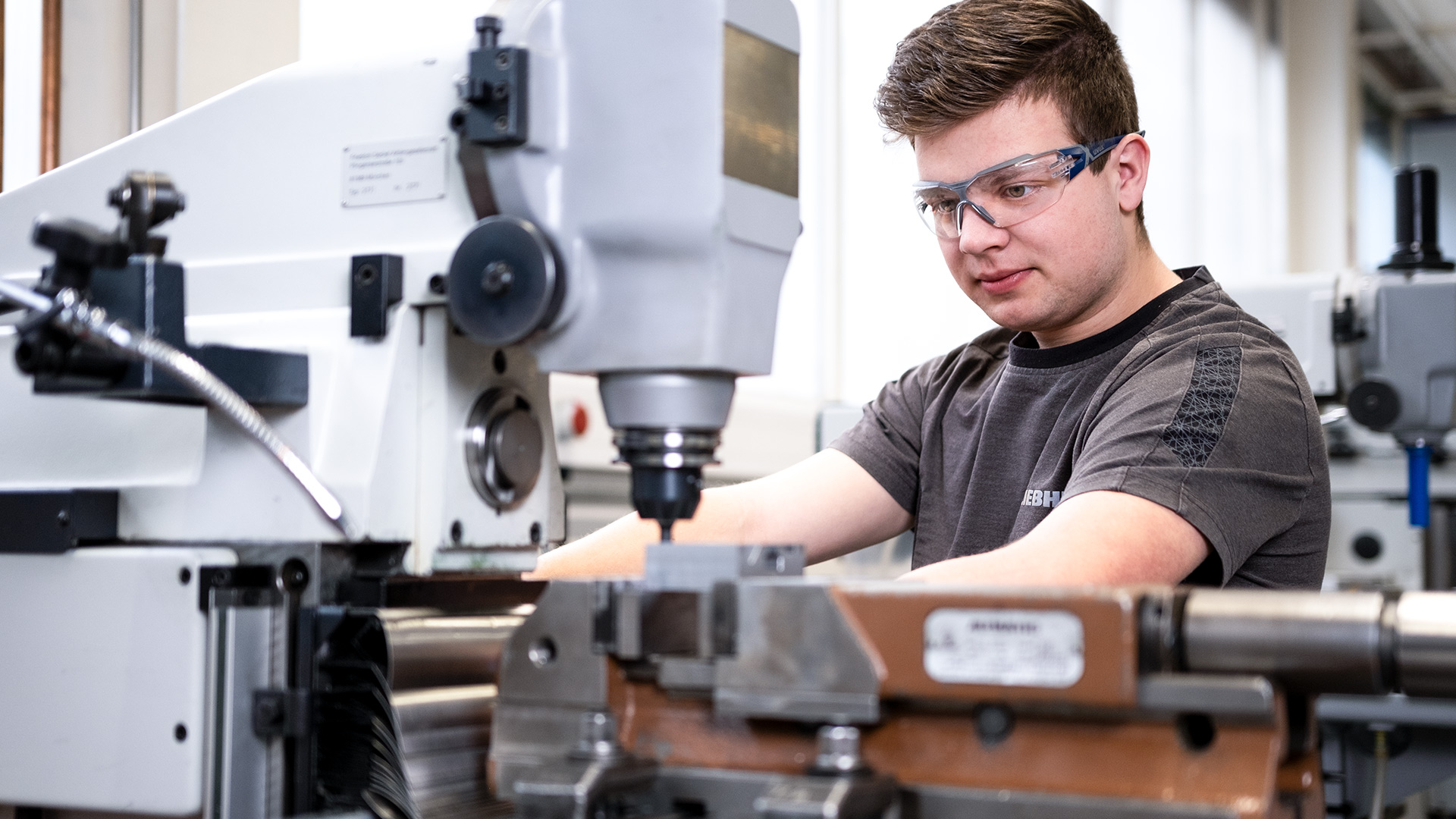 In der Lehrwerkstatt wird gebohrt, gefräst, gefeilt, Stromkreise werden geschlossen und an Abschlussprojekten gearbeitet. Zudem zeigt uns die Auszubildende Vanessa einen Einblick in ihre Tätigkeiten in der Verpackung. Bei den Lehrlingen bei Liebherr ist ganz schön was los!