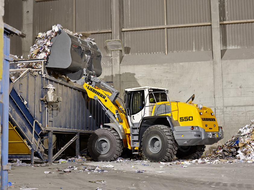 Der auf der NordBau 2014 ausgestellte Radlader L 550 mit Industriehubgerüst ist mit einer 6m³ Leichtgutschaufel mit Unterschraubmesser ausgestattet. Die Maschine bringt in Standardausführung 19.000kg auf die Waage und erreicht eine Kipplast von 9.900kg.