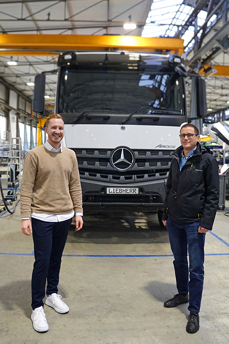Die Zukunft des Fahrmischers ist elektrisch. Bereits seit mehreren Jahren bietet das Liebherr-Produktsegment mit der ETM-Serie Fahrmischer mit elektrischem Trommelantrieb an, auch vollelektrische Fahrmischer sind Teil des Programms. Auf der Bauma 2022 stellte die Liebherr-Mischtechnik GmbH in Kooperation mit Mercedes-Benz Trucks und der Paul Group den nächsten Entwicklungsschritt vor: den Prototyp des ersten elektrifizierten Arocs, den „Battery-Electric Arocs“. Wie geht es weiter mit dem Prototypen? Wir haben bei Alexander Pifko, Entwickler des ETM bei Liebherr, und Nico Müller, Produktmanager bei Liebherr, nachgefragt.
