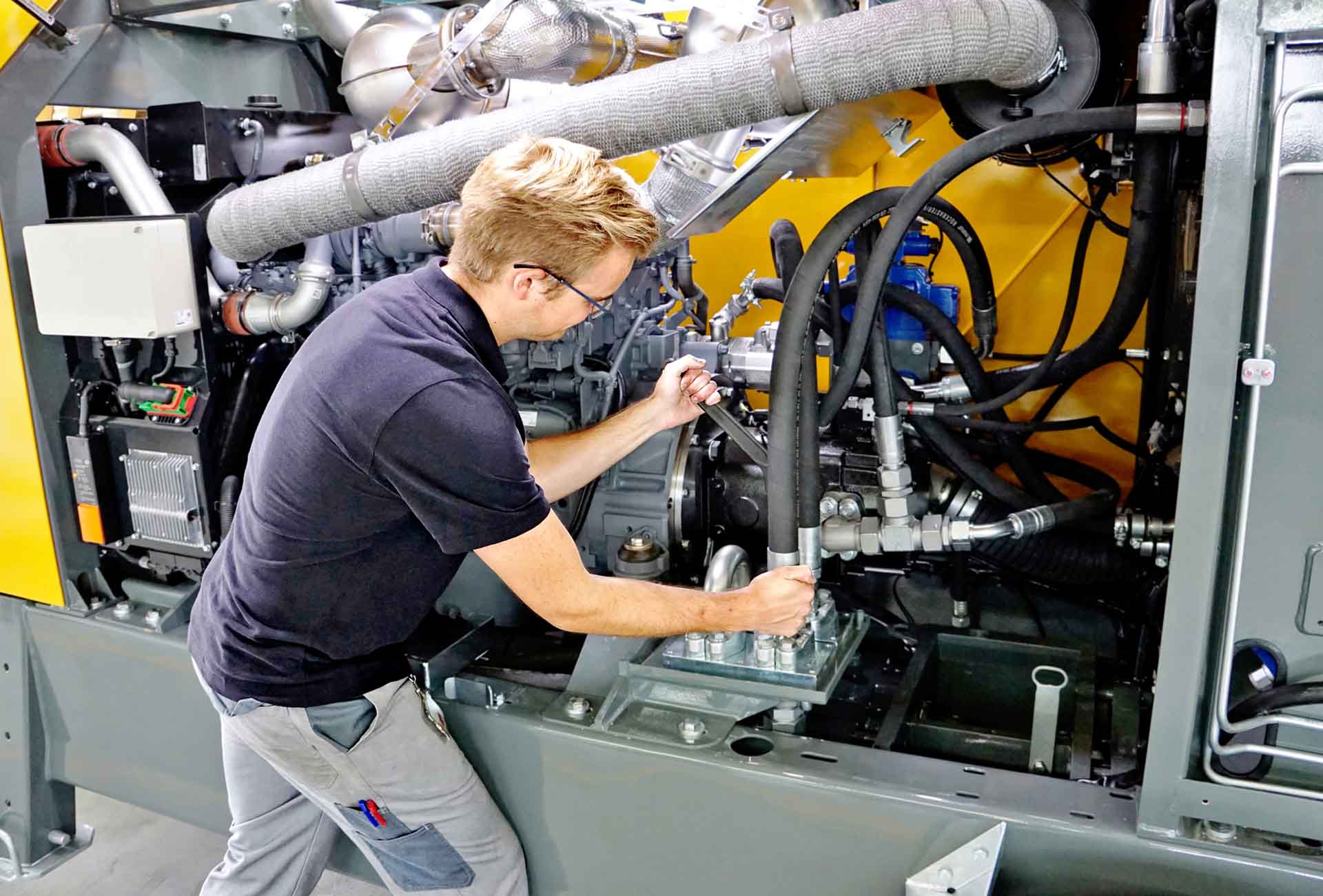 Unsere Lernfabrik ist etwas ganz Besonderes! Unsere Azubis bauen hier bereits während der Ausbildung selbstständig Raupenbetonpumpen.