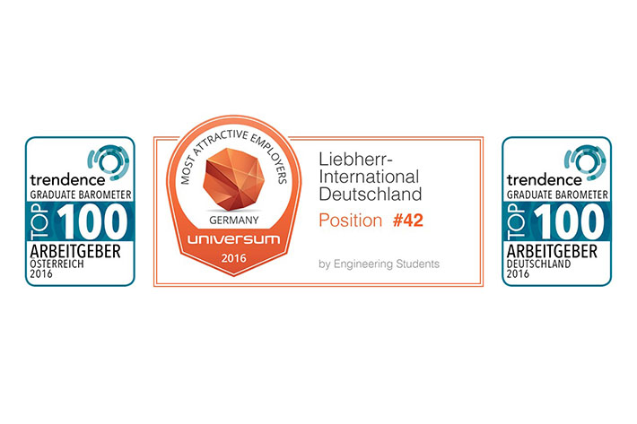Einen weiteren Erfolg konnte Liebherr im Wettbewerb „Attraktivster Arbeitgeber 2016“ des Universum Instituts verbuchen. In der Umfrage, die von der Wirtschaftswoche beauftragt wurde, stuften über 45.000 Studierende aus 215 Hochschulen das Unternehmen im Engineering-Ranking in ihrer Attraktivität auf Platz 42 ein – im Vergleich zum vergangenen Jahr eine Verbesserung um 11 Positionen.