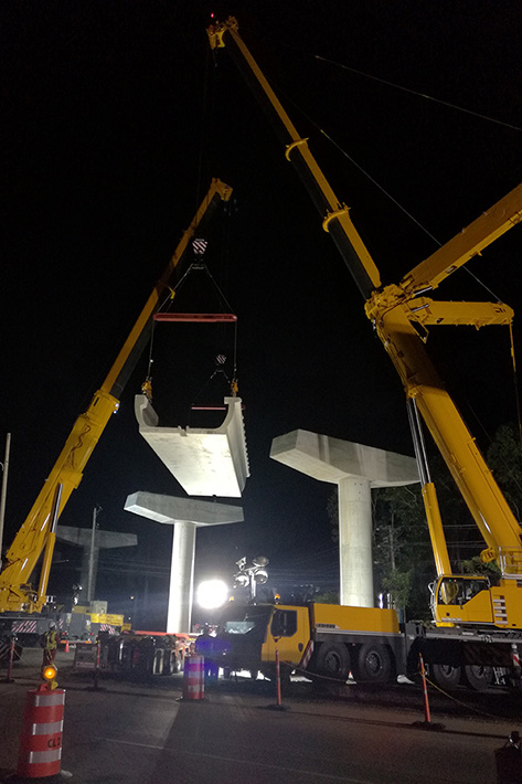 Das kolumbianische Kranunternehmen Mamut de Colombia ist derzeit an der Errichtung der Metrolinie 2 in Panama Stadt tätig. Hierbei heben zwei Liebherr Mobilkrane vom Typ LTM 1500-8.1 und ein Liebherr Mobilkran LTM 1400-7.1 insgesamt 1.640 U-Träger aus Beton mit einem Gewicht von bis zu 161 Tonnen auf vorgefertigte Säulen bis Ende 2018.
