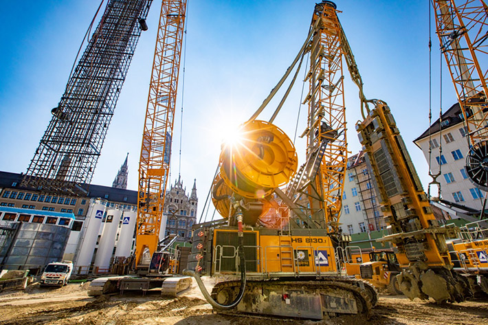 Die Deutsche Bahn erweitert das S-Bahn-Netz in München. Am Marienhof in der Altstadt entsteht eines der zentralen Zugangsbauwerke zur zweiten Stammstrecke. Für die Errichtung sind dort 6 Liebherr-Maschinen im Einsatz. Selbst die hohen Anforderungen an die Umsetzung können das neue Schlitzwandpaket nicht erschüttern.