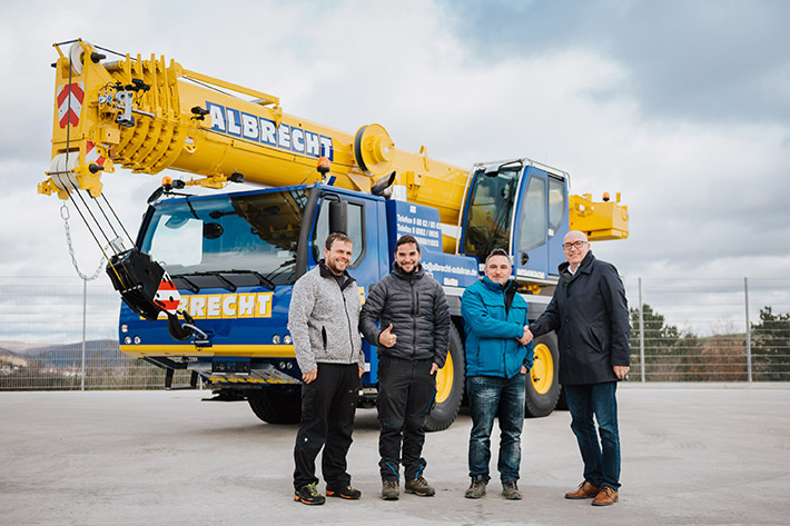 Das Familienunternehmen Albrecht wurde in den 80er Jahren als Schalungsverleih gegründet. Heute betreibt die Firma 6 Mobilkrane bis 120 Tonnen Tragkraft in der Fahrzeugflotte. Der LTM 1060-3.1 ist ihr erster Kran von Liebherr. Andreas Albrecht erklärt: „Der LTM 1060-3.1 war der Kran, der unsere Ansprüche in Wendigkeit, Traglast und Reichweite sowie der Auswahl an Zusatzausrüstungen kompromisslos erfüllen konnte. Er bietet eine Menge an technischen Möglichkeiten, beispielsweise die variable Abstützbasis VarioBase®, was bei der Entscheidung ebenfalls eine Rolle gespielt hat. Dazu kommt ein hoher Komfort in den Fahrerkabinen. Das macht die tägliche Arbeit erheblich angenehmer.“