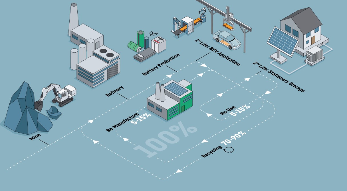 Life cycle, second life applications, remanufacturing, and recycling of high-voltage battery systems