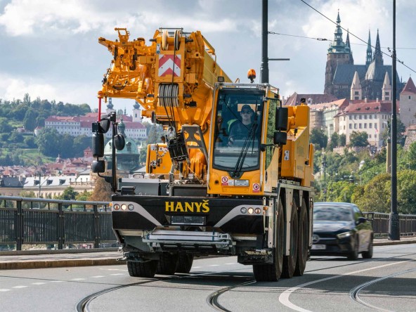 “Small, agile, powerful”: No fewer than 14 LTC 1050-3.1 units are in use at Hanyš. Most of them operate in the greater Prague area. The compact crane is often indispensable for jobs in the narrow streets of the historic city centre.