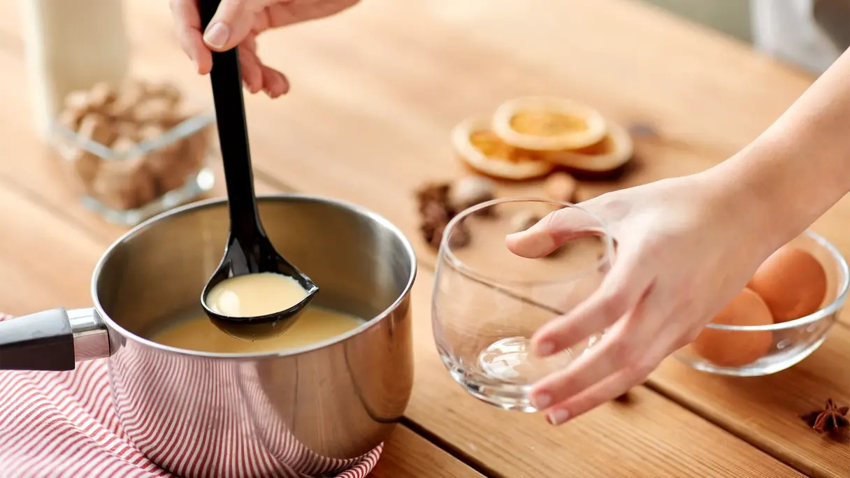 One classic ploy is to replace some of the milk with cream. Milk with a higher fat content will also provide a fuller-bodied taste. If you want the punch to be even lighter and airy, you can froth up the milk or cream before you heat it. The way the eggs are prepared also plays an important role: Beat the egg yolks thoroughly with sugar until the mixture has a light yellow colour and a fluffy consistency.