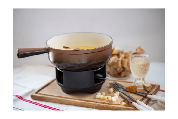 Fondue is surprisingly easy to put together, you only need: cheeses with melty-inclinations, a bit of olive oil, a garlic clove, a dash of cornstarch and a splash of booze – beer, wine, cider or even spirits can work well, and are ultimately the best pairing! Lots of inspirations and recipes to be found online.