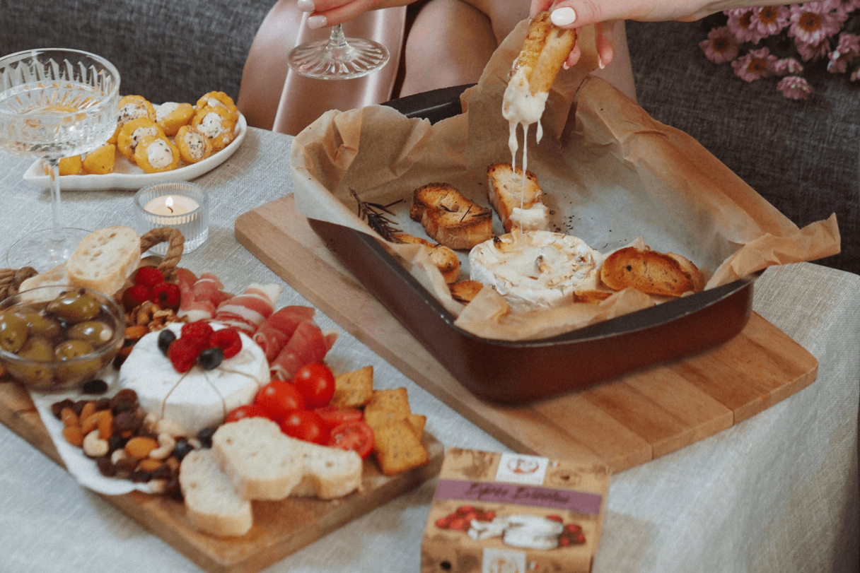 Baked Camembert. So simply and yet so good. Put one out at the start of a dinner party with some crusty bread and watch it disappear! Sure, you could simply pop it in the oven naked, and it’ll do the trick, but why not jazz it up! Anything worth doing is worth doing right! Treat yourself!