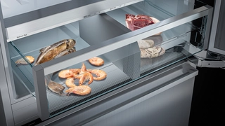 The BioFresh Plus Safe guarantees you a perfect storage climate and extra-long freshness of fruit and vegetables, meat and dairy products as well as fish and seafood – all in just one compartment. Depending on the food, the Meat & Dairy safe can be divided into various temperature zones from just over 0 °C (32 °F) to an icy -2 °C (28 °F).