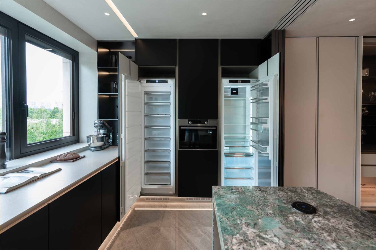 The opulent estate situated on Ningbo's Man Island exemplifies refined living. Within its expansive interiors, Liebherr refrigeration units stand as testaments to uncompromising quality and modern convenience, providing both superior preservation and an understated elegance befitting the residence's grandeur.