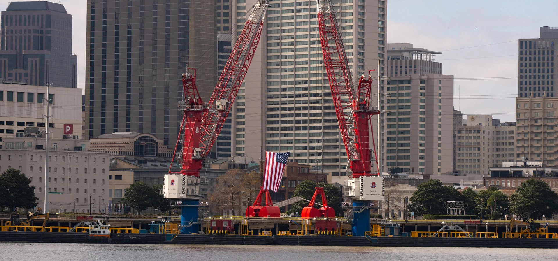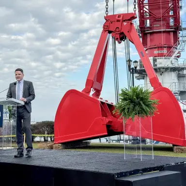 At the christening event in New Orleans, Liebherr and Associated Terminals proudly unveiled two all-electric CBG 500 E cranes that are setting a new standard for river logistics on the Mississippi. The CBG 500 E models offer up to 90 tons of grab capacity and are designed for demanding inland waterway operations, showcasing Liebherr’s engineering strength.