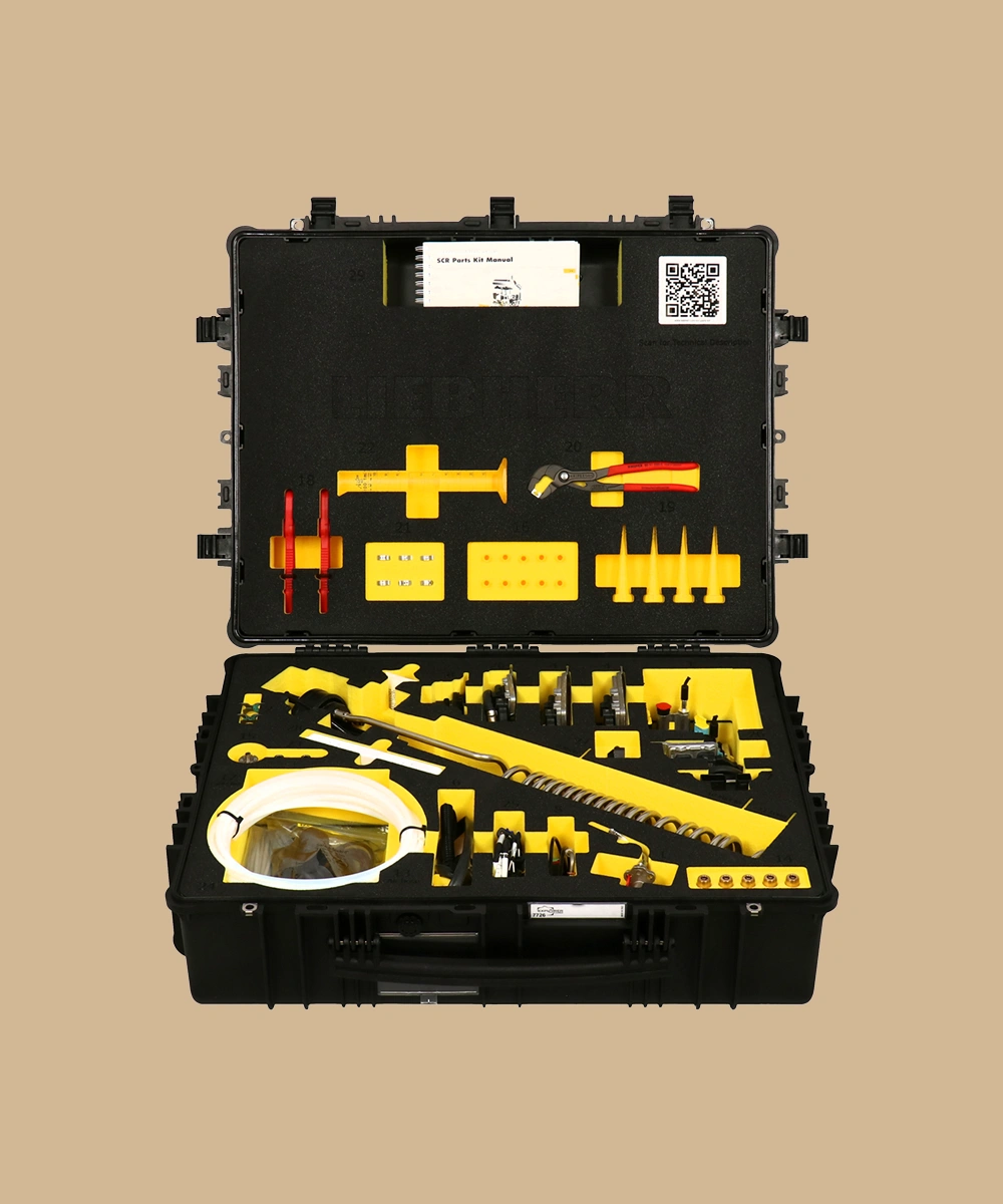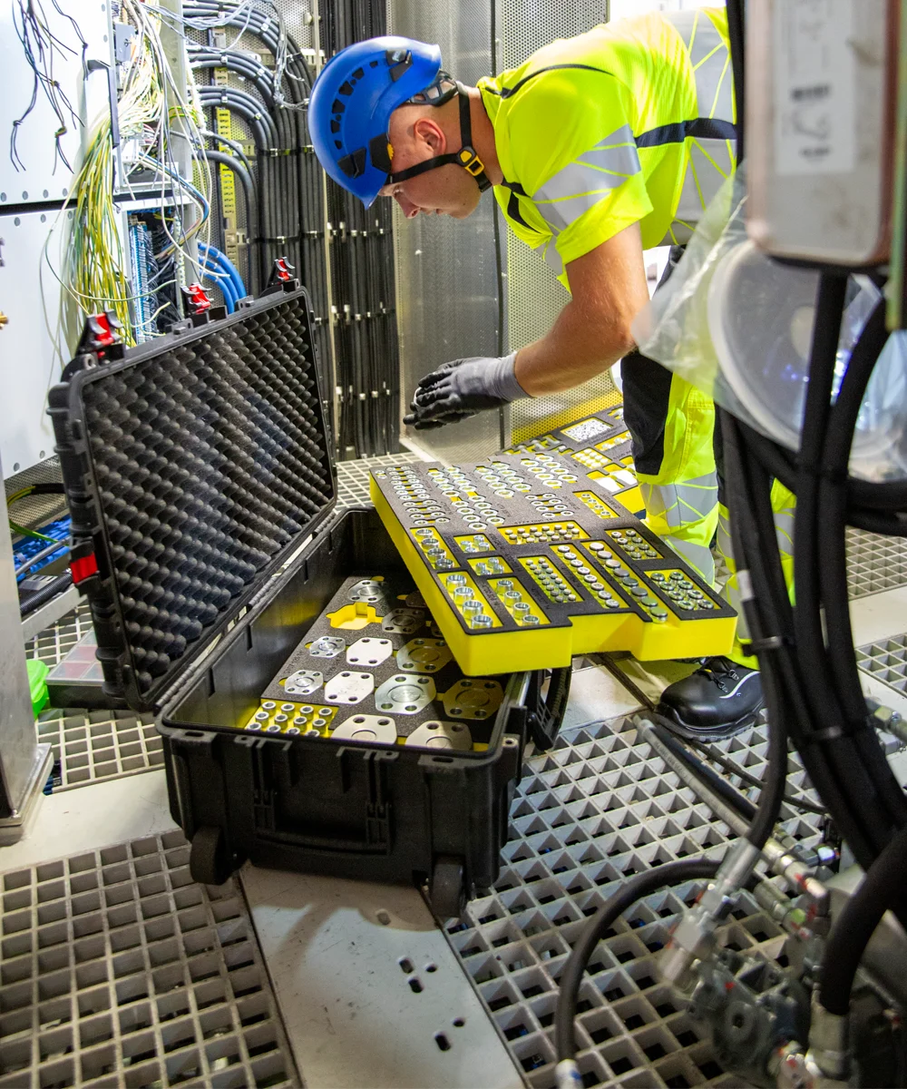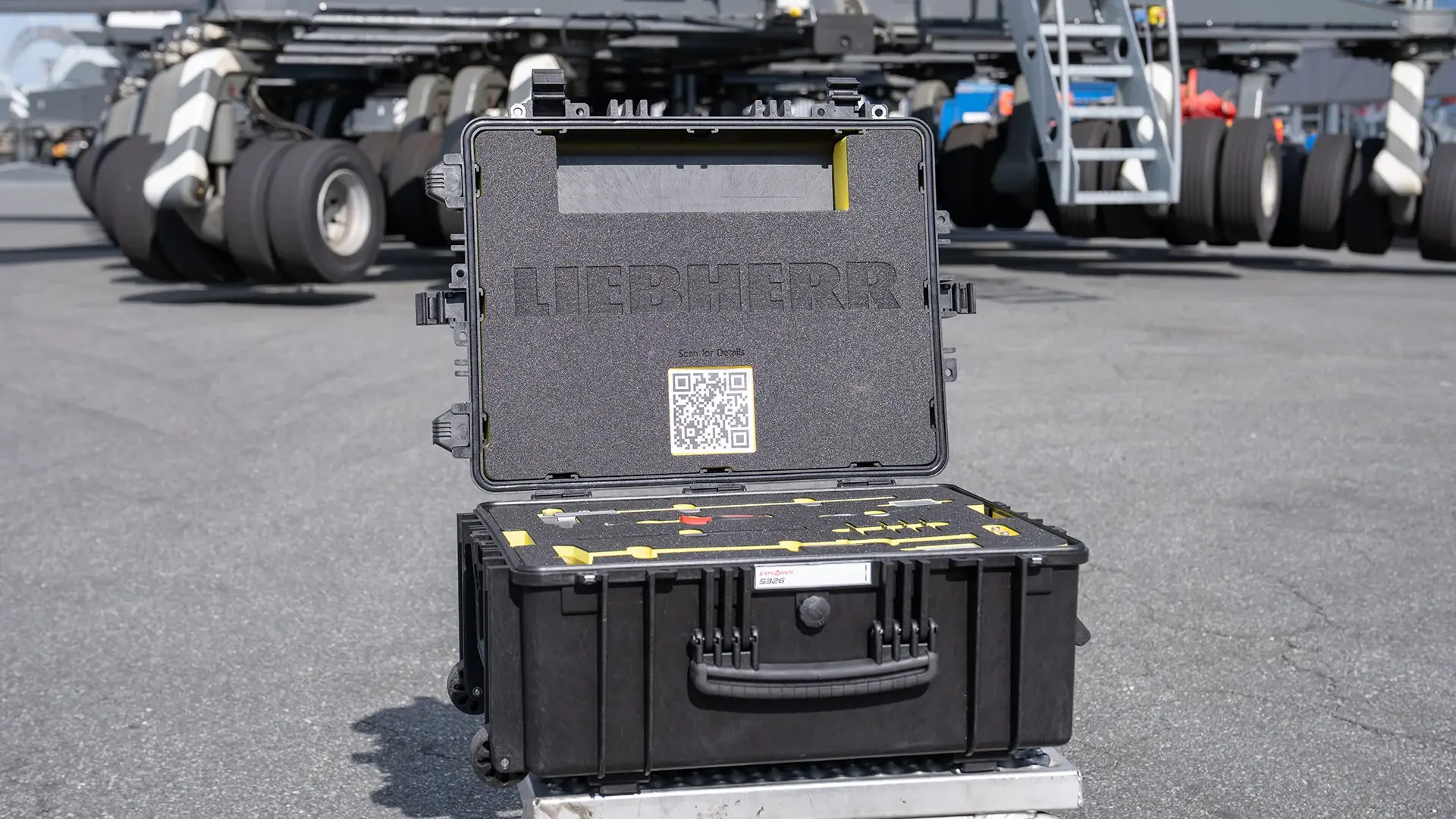 The crane inspection kit is specifically designed for Liebherr maritime cranes and contains the relevant tools and testing equipment for inspecting them. The tools can also be used for other types of equipment.