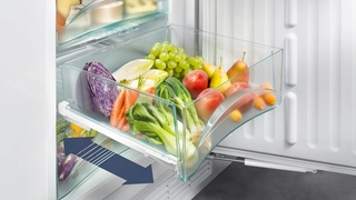 The humidity level inside the BioCool-Box can be regulated using a slider control so that the freshness of fruit and vegetables stored in the refrigerator compartment can be preserved for longer.