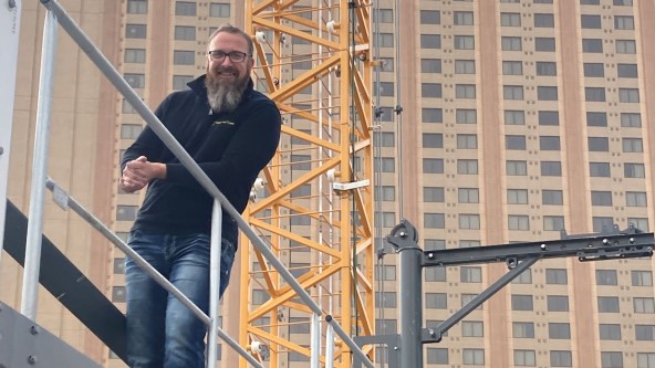For more than five years, Aaron Malueg, Technical Advisor and Trainer for Liebherr Tower Cranes, has been helping bring Liebherr’s most impressive displays to life. His work behind the scenes at Conexpo blends planning, technical mastery, and a deep passion for the brand. A combination that turns complex setup operations into seamless showcases of innovation.