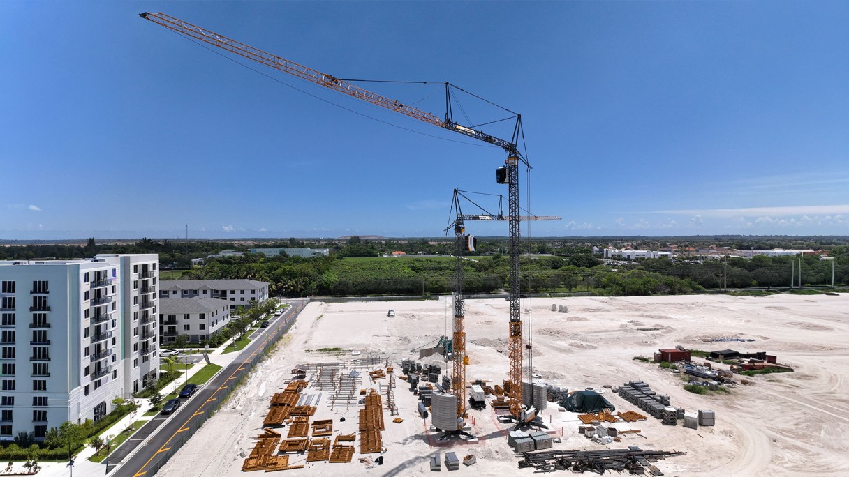 To meet the demands of affordable housing construction, MRA Equipment Rental LLC is leveraging Liebherr’s self-erecting tower cranes to streamline modular constructionsites throughout Miami, including Princeton Gateways I. These advanced cranesenable rapid deployment and offer easy maneuverability, making them an ideal choicefor the urban construction site.