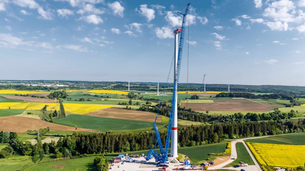 Two LR 11000 crawler cranes owned by the transport and crane company Felbermayr are operating close to their place of birth. Just 20 kilometres away from Liebherr’s manufacturing facility in Ehingen, they are assembling six wind power turbines with a gondola height of 162 metres. The 1,000-tonne crawler cranes are equipped with state-of-the-art crawler crane technology: V-Frame® and VarioTray®.
