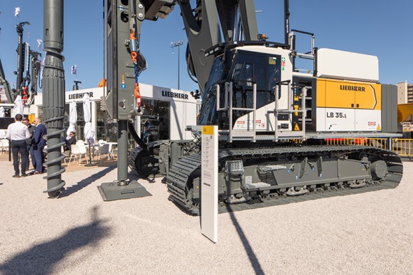 The Liebherr LB 35.1 drilling rig offers enhanced performance for deep‑foundation applications such as Kelly drilling, CFA drilling and double rotary drilling. With the new lattice boom extension, which can be retrofitted to the LB 35.1 and LB 45.1 models, the rigs can reach drilling depths of up to 123 ft (37.5 m) for full displacement drilling. Equipped with a 603 hp (450 kW) engine and 350 kNm torque, the rig also features reduced‑noise winches with 300 kN line pull, modular components and the ability to transport the machine in one piece with the leader folded. Numerous assistance systems increase automation and safety while a redesigned cab improves ergonomics and operator comfort.