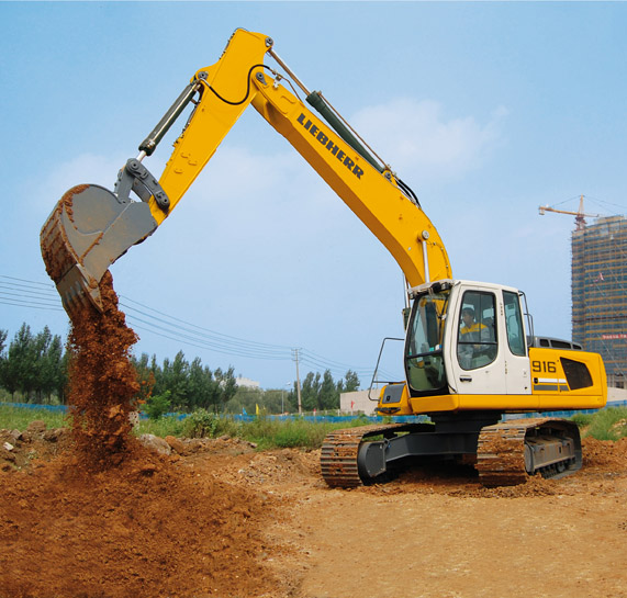 Liebherr has designed the R 916 crawler excavator especially for earthmoving work. It has a new steel construction and a newly designed undercarriage. With an operating weight of approx. 25 tonnes, the Liebherr R 916 crawler excavator has an engine output of 115 kW / 156 hp (ISO 9249). The engine guarantees effective power output, high efficiency and a long service life, and it satisfies the Stage IIIA / Tier 3 emissions standard.