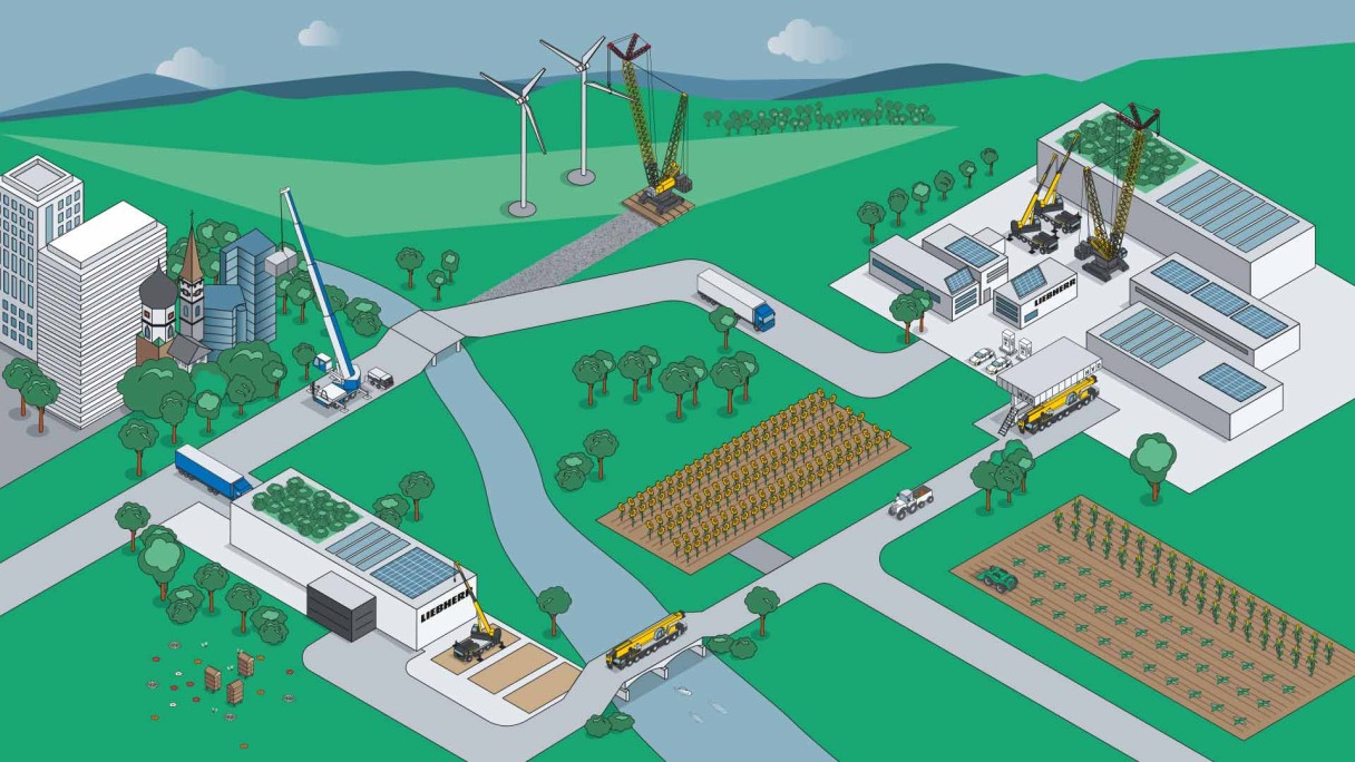 The energy transition is moving forward, climate protection is on everyone's lips. And we are helping to shape the change: Whether through our products, in building management or in plant traffic – there are many small and large examples of environmental protection at Liebherr in Ehingen. In addition, our products are used all over the world to preserve our environment for future generations – for example, through the construction of wind turbines.