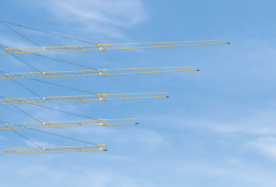Simple setup kinematics and rope support make our cranes ideal for mastering the challenges of modern construction sites. Even where space is limited, aerial assembly makes it possible to overcome obstacles of up to 25 metres. Thanks to their clever design, the required assembly area is kept to a minimum, and even extreme weather conditions such as low temperatures don’t impact assembly.