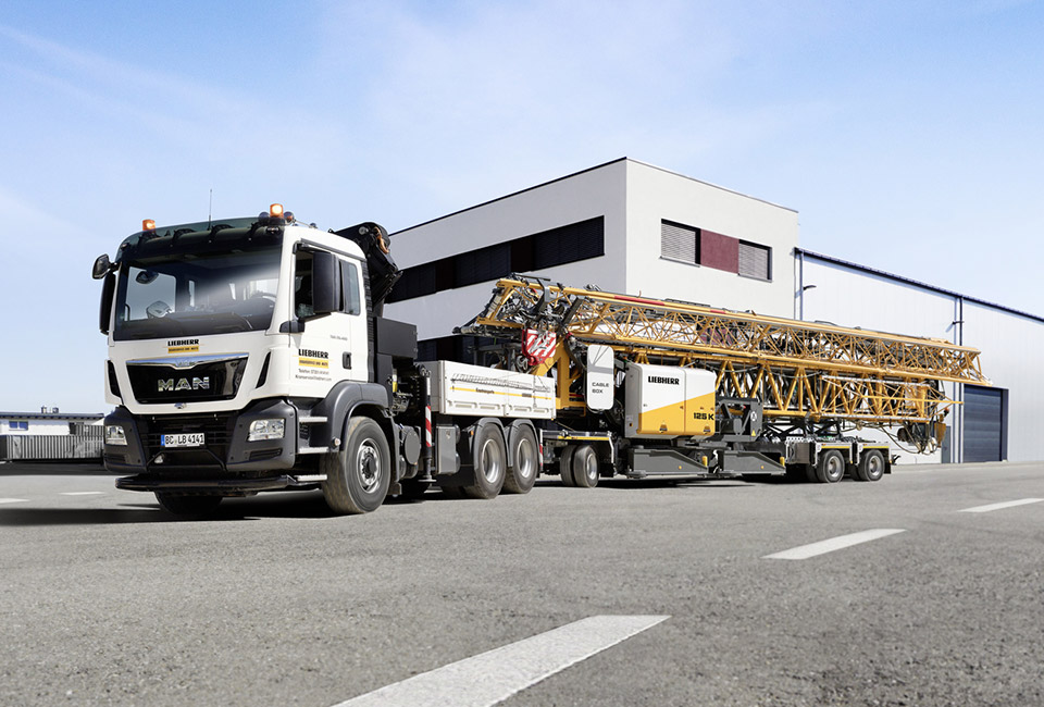 Thanks to their flexible transport concept, K cranes are ready to go in very little time, no matter how confined or extensive the construction site is. Axle options for 25 km/h and 80 km/h make sure that all requirements can be met. The 25 km/h axle is ideal for short distances and challenging terrain, while the 80 km/h axle makes transport over longer distances easier and reduces logistical effort.