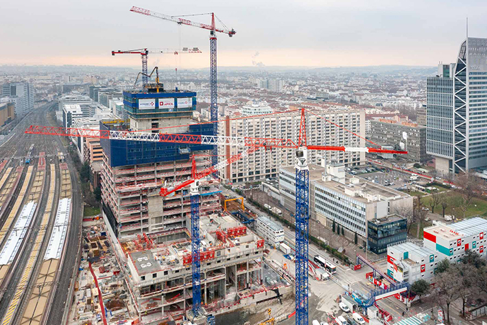 Las grúas apoyan principalmente la instalación de elementos de acero y los trabajos de hormigonado. Algunas elevaciones son de más de doce toneladas. El sistema de asistencia Micromove puede ser una ventaja en este caso. Micromove permite a los operadores de grúas posicionar cargas pesadas de forma precisa y delicada y es uno de los varios sistemas de asistencia disponibles. Litronic, el asistente inteligente de Liebherr, tiene como objetivo apoyar a los operadores de grúas en su trabajo y aumentar el rendimiento de manipulación, la fiabilidad y la seguridad.