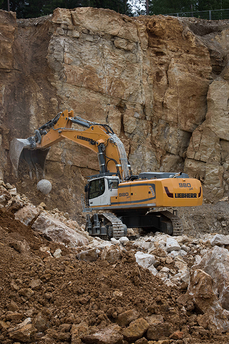 La empresa familiar Pongratz Schotterwerk GmbH & Co. KG, con sede en Ensdorf-Wolfsbach (Baviera, Alemania), tiene en servicio una excavadora sobre cadenas Liebherr del modelo R 980 SME en una cantera de piedra caliza desde mayo de 2016. La excavadora de 100 toneladas se utiliza con la ayuda de una bola de demolición para preparar la piedra y cargar los dúmperes con los escombros.