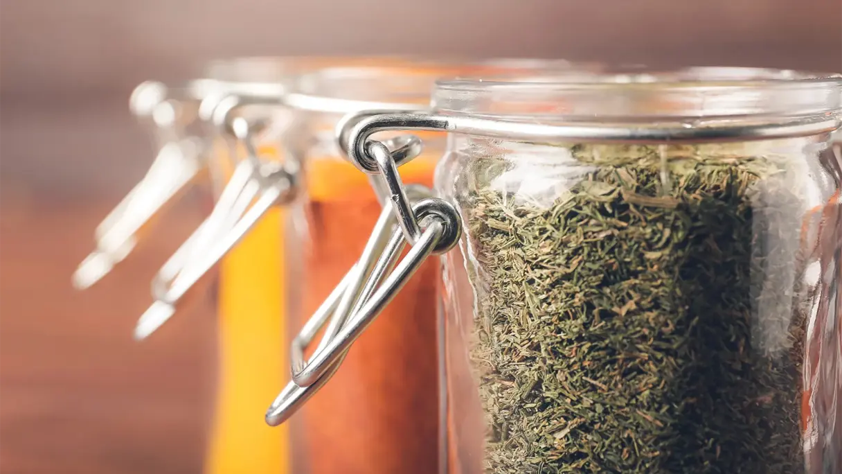 - Maitseained võib ümber panna kergesti suletavasse läbipaistvasse klaaspurki, kui neid kavatsetakse hoida pimedas ja mitte liiga soojas panipaigas. Klaaspurgid on sobivad, sest need ei ima lõhnu, neid on lihtne puhastada ja need sulgevad täielikult õhukindlalt.