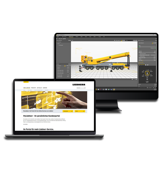 • Capacités de charge exactes, pressions de contact au sol/forces d'appui et calculs du centre de gravité basés sur les données LMB et LICCON d'origine des grues mobiles et sur chenilles Liebherr.