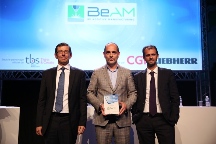 Liebherr-Aerospace, partenaire de l’évènement, a remis le trophée de la catégorie « Innovation » à la société Beam.