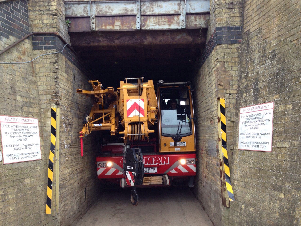 La grue a dû négocier un virage à 90 degrés directement avant l'entrée du tunnel. Puis, grâce à ses quatre roues directrices, la LTC 1045-3.1 a pu remettre ses roues droites sans problème juste avant l'entrée du tunnel. L'équipe de l'entreprise Cadman Cranes dont le siège est situé à Colchester a ensuite baissé la flèche autant que possible afin de réduire la hauteur de la grue. Les rétroviseurs rabattables ont contribué à réduire la largeur de la LTC 1045-3.1. La suspension primaire hydropneumatique a permis de soulever légèrement la grue d'un côté afin d'éviter que la grue compacte ne vienne frotter contre les parois du tunnel étant donné que la route n'était pas tout à fait droite.