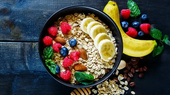 Овес идеально подходит для приготовления мюсли на завтрак. Они отлично подходят для включения в рацион, так как содержат много сложных углеводов и клетчатки. Они надолго сохраняют чувство сытости, а значит, у вас будет меньше тяги к еде.