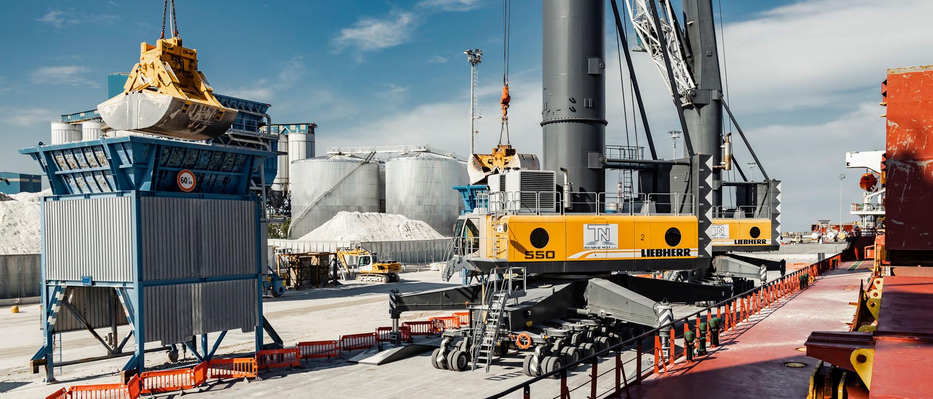 Liebherr предлагает широкий ассортимент продукции для высокоэффективной перевалки сыпучих материалов с помощью грейферов различных типов. Мобильные портовые краны Liebherr с максимальной грузоподъёмностью до 2300 тонн в час могут эксплуатироваться не только во внутренних, но и в крупных морских портах.