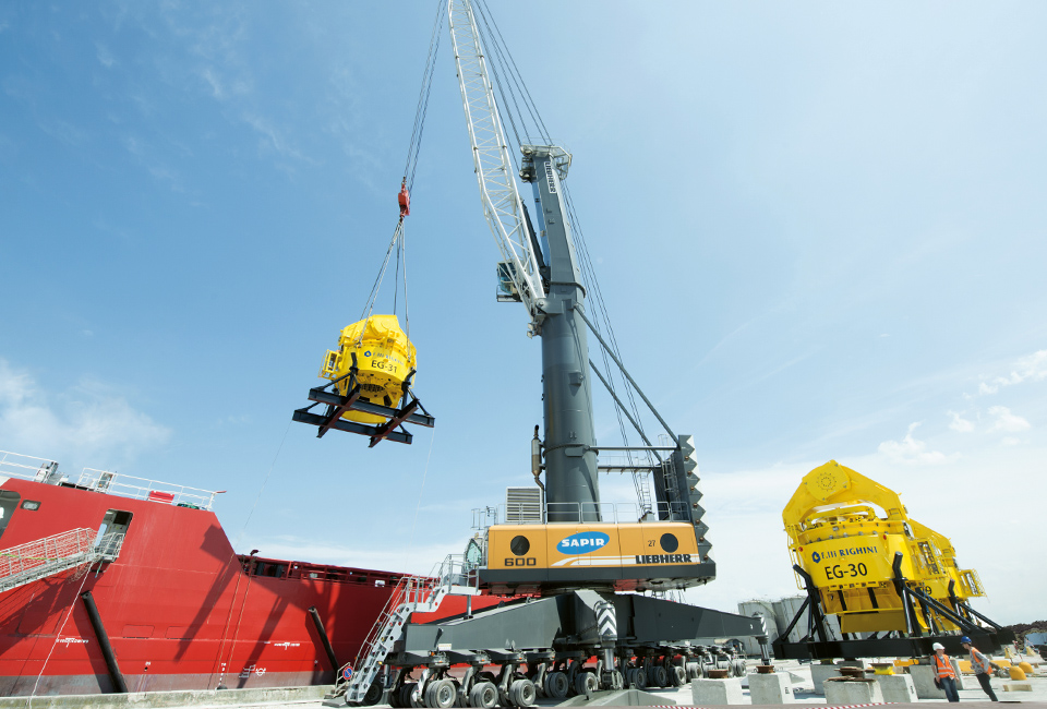 - И плавучий вариант для баржевых кранов (LBS – Liebherr Barge Slewing).
