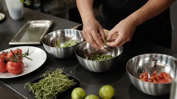 - Матеріали та прилади: довговічні, прості у догляді матеріали та енергоефективні кухонні прилади для сталого використання.