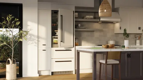 - Холодильник повинен бути достатньо великим для вашого домогосподарства і мати достатньо місця для вентиляції в місці його розташування. Як правило, домогосподарство з однієї або двох осіб потребує від 70 до 100 літрів корисного об'єму. Для домогосподарств з більшою кількістю людей слід додавати від 40 до 50 літрів на кожну додаткову особу. Можливо, ви захочете інтегрувати холодильник Side-by-Side у вашу нову кухню.
